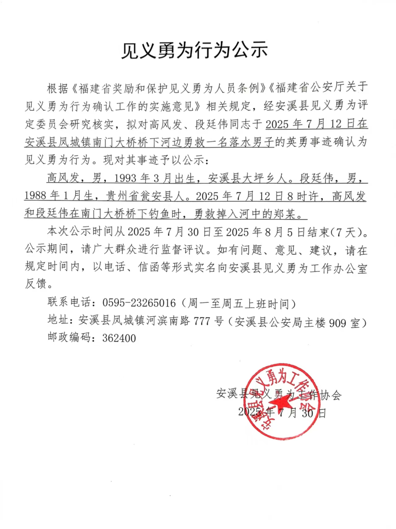 见义勇为行为公示