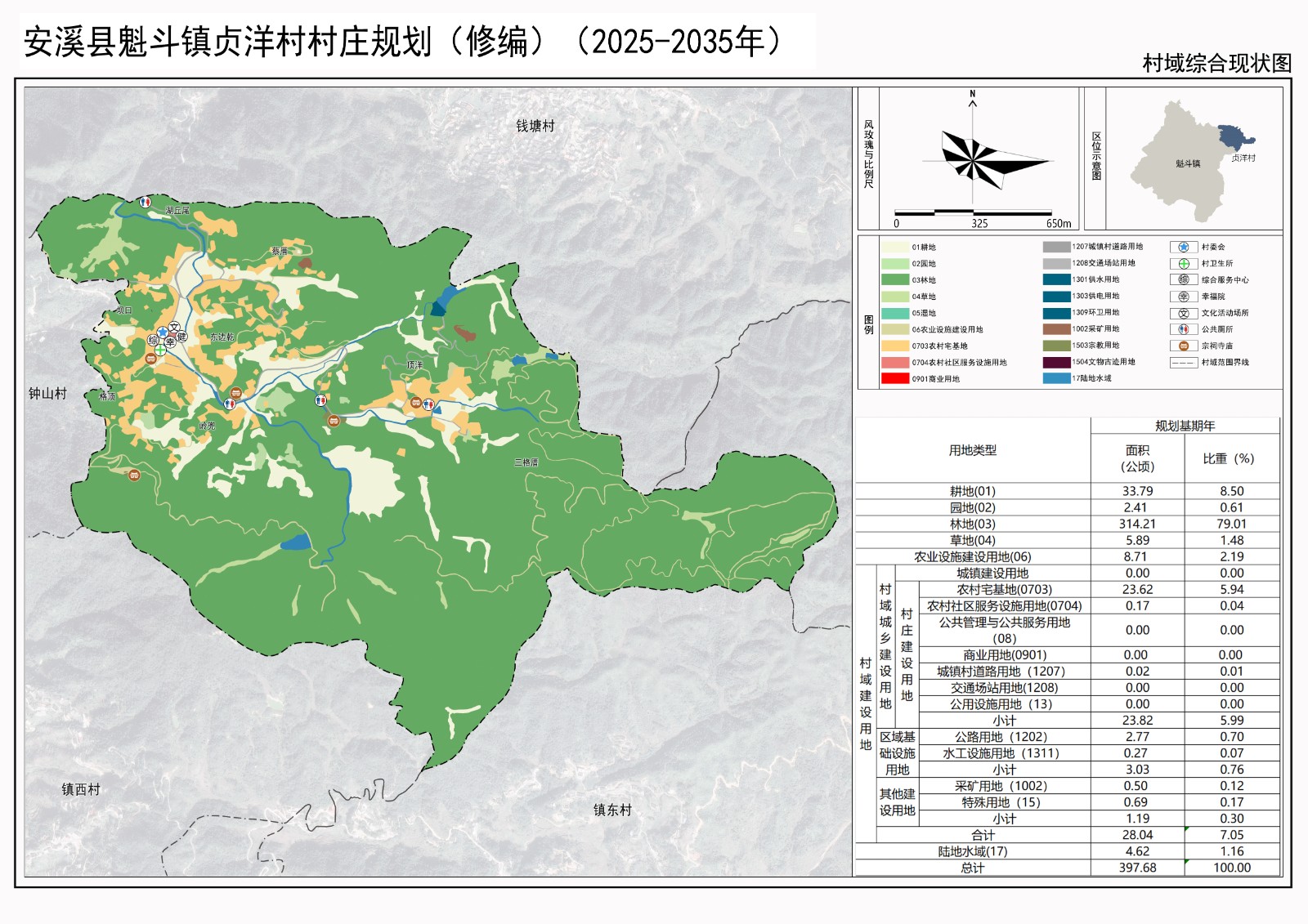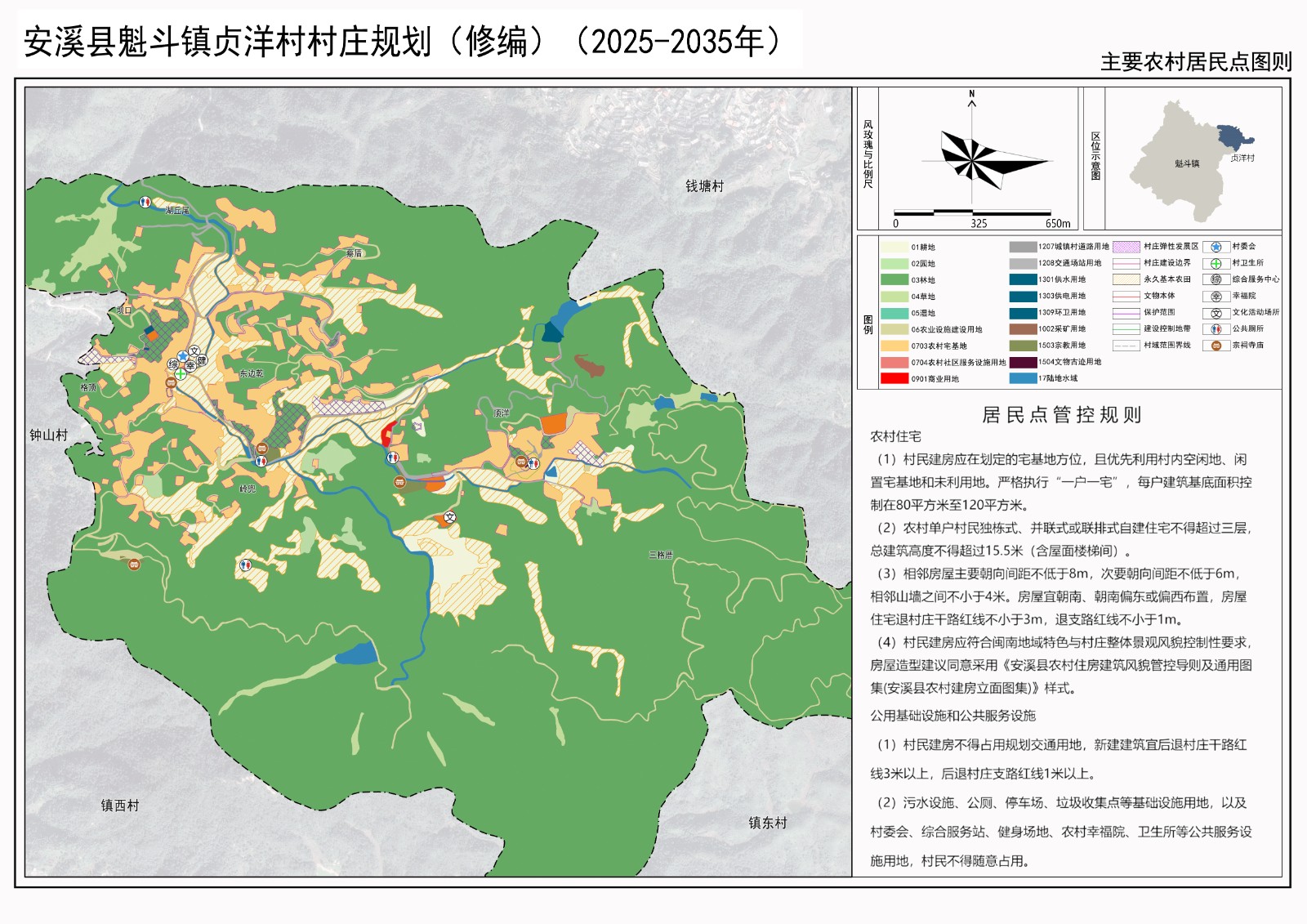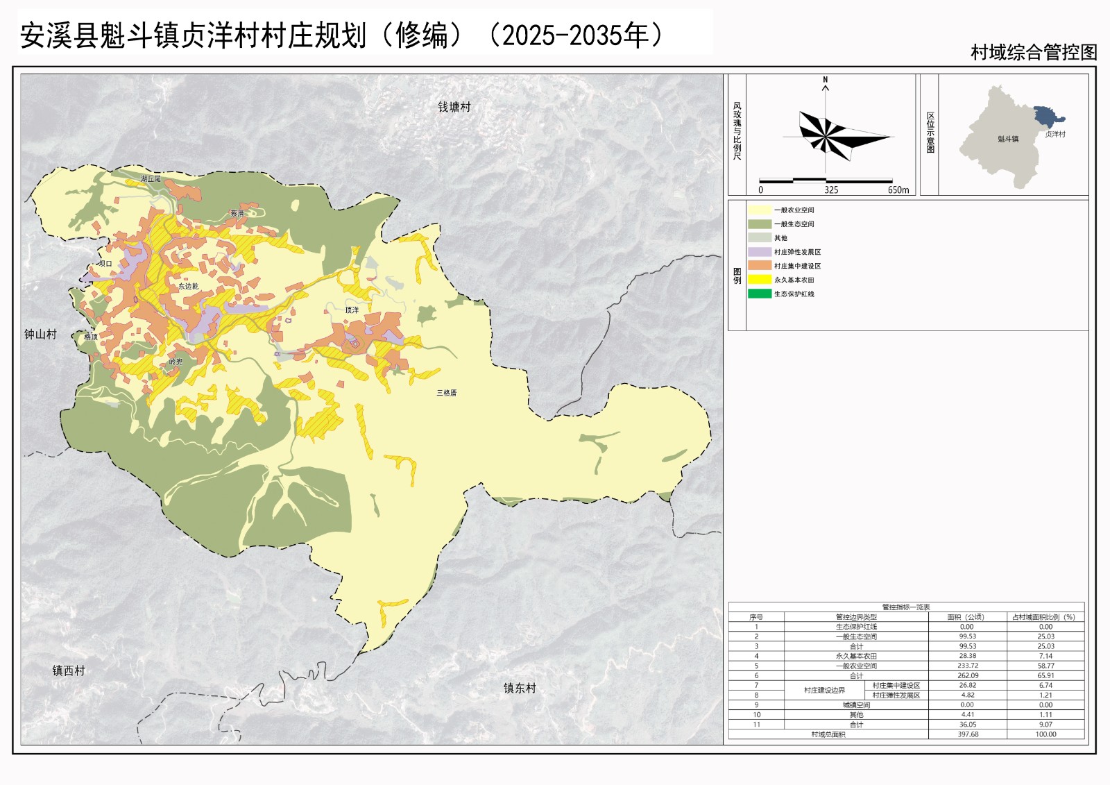 为了切实有效指导安溪县魁斗镇贞洋村的规划建设,我镇委托中享设计集团有限公司开展《安溪县魁斗镇贞洋村村庄规划(修编)(2025-2035年)》的方案编制工作。经设计单位实地勘查、资料收集、分析梳理、征求意见及多轮修改后形成规划方案,对村庄的用地性质、道路交通、配套设施、景观风貌等提出了具体指导,并于2025年9月14日通过县自然资源局组织的专家技术评审,9月17日通过贞洋村村民代表会议审议。为提高规划编制的民主性和科学性,根据《中华人民共和国城乡规划法》、《福建省实施<中华人民共和国城乡规划法>办法》等有关规定,现对该规划成果进行公示(公示期三十天),向社会公众征求意见和建议。