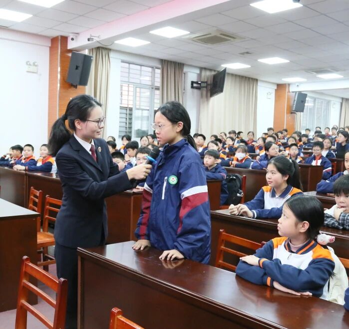 “同学们,我们国家的根本大法是哪一部法律?”“国家宪法宣传日是哪一天?”随着检察官的提问,课堂气氛瞬间活跃起来,同学们争先恐后举手回答“宪法!”“12月4日”。响亮的回答声,是同学们对宪法最直观的认知。“刺桐花”未检团队成员通过知识问答、生活化案例释法等形式,将抽象的宪法条文转化为生动朴实的语言,从“宪法是什么”延伸到“宪法与我”,引导学生思考如何正确行使权利、履行义务,争当宪法的自觉践行者。