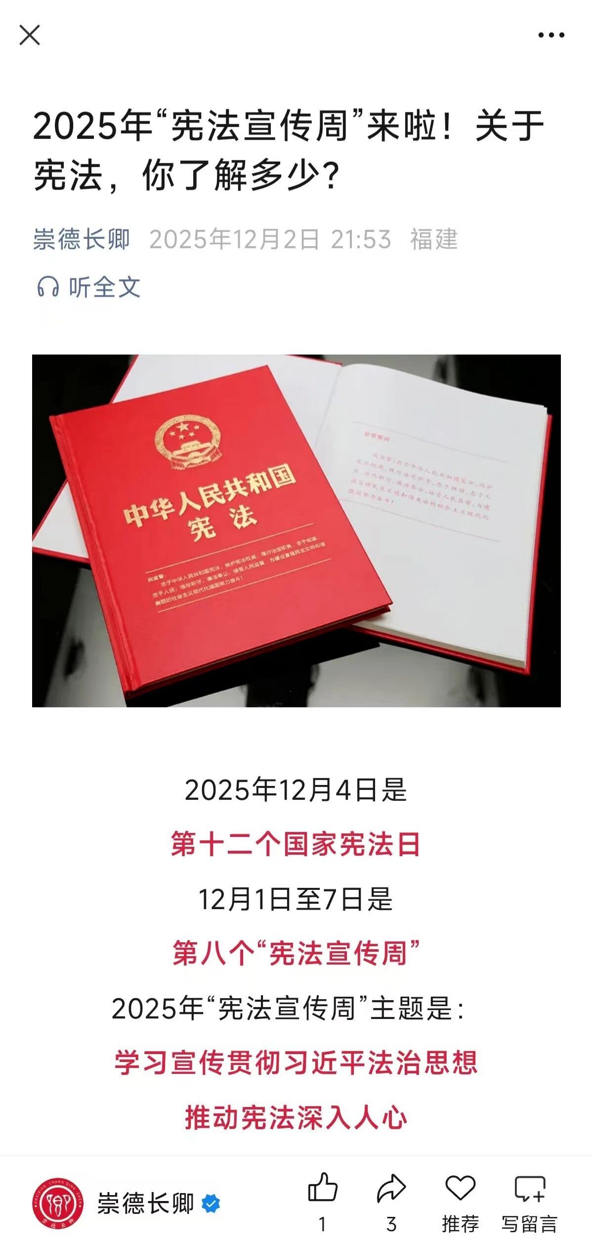 网络是法治宣传的新阵地。长卿镇坚持线上线下同频共振,构建起“屏幕+指尖”的立体宣传矩阵。线下,全镇各村、企事业单位的LED显示屏滚动播放“弘扬宪法精神,维护宪法权威”等宣传标语,营造“抬头看得见、处处受教育”的浓厚氛围。线上,充分运用“崇德长卿”微信公众号等新媒体平台,推送宪法知识图文、普法短视频,让法治精神在“云端”广泛传播、在“指尖”悄然传递,使法治之树的枝叶延伸到网络空间的每一个角落,绽放出璀璨的时代光彩。