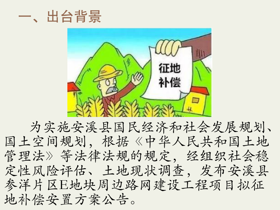 政策图解:《安溪县人民政府关于安溪县参洋片区E地块周边路网建设工程项目拟征地补偿安置方案公告》