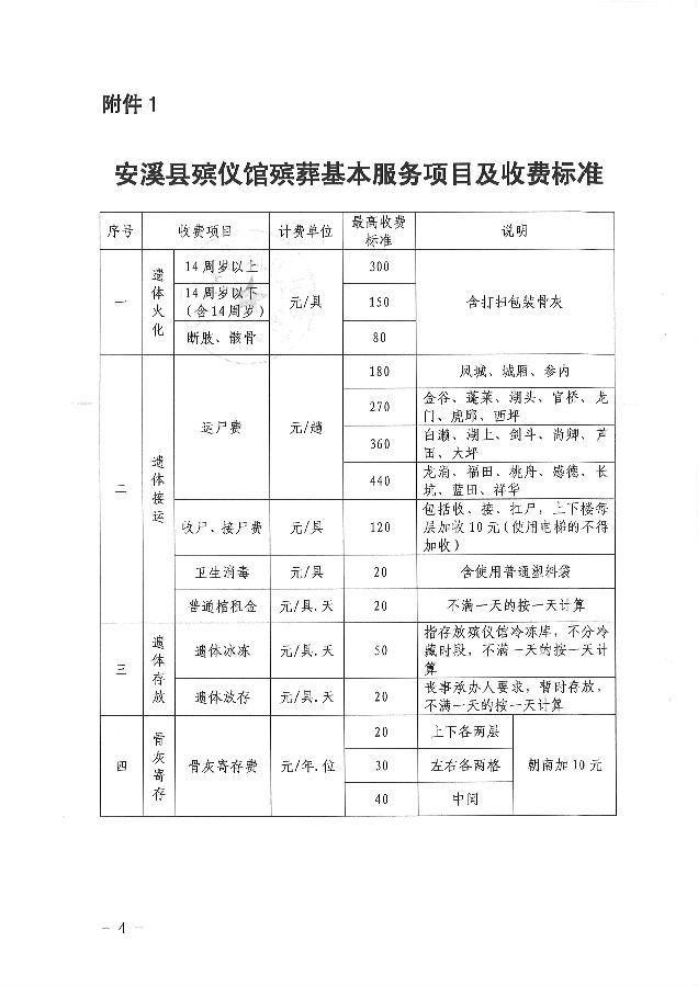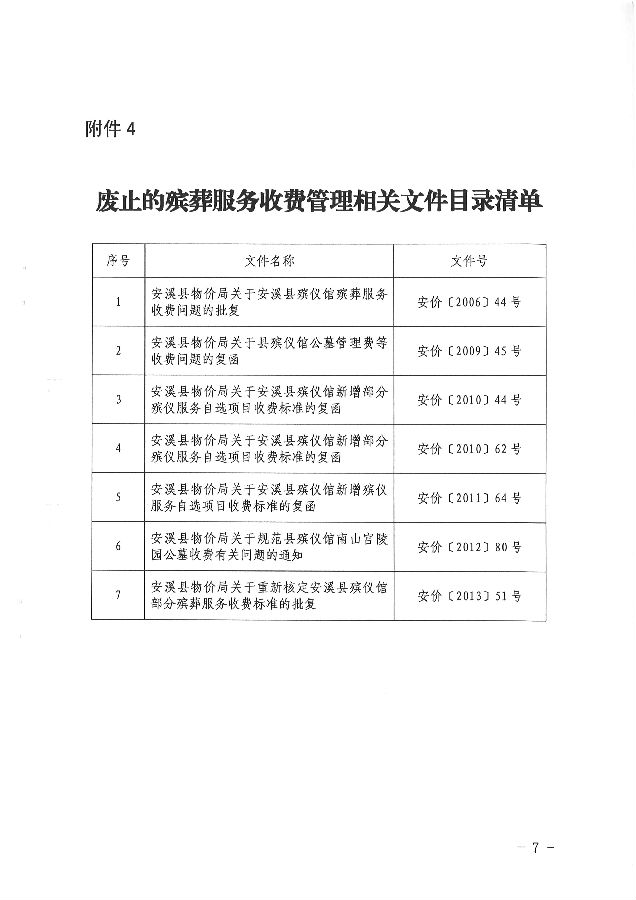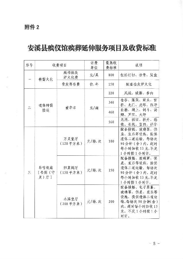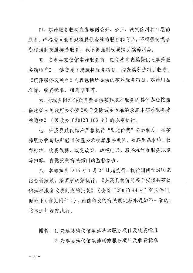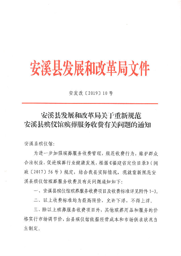 安溪县发展和改革局关于重新规范安溪县殡仪馆殡葬服务收费有关问题的通知