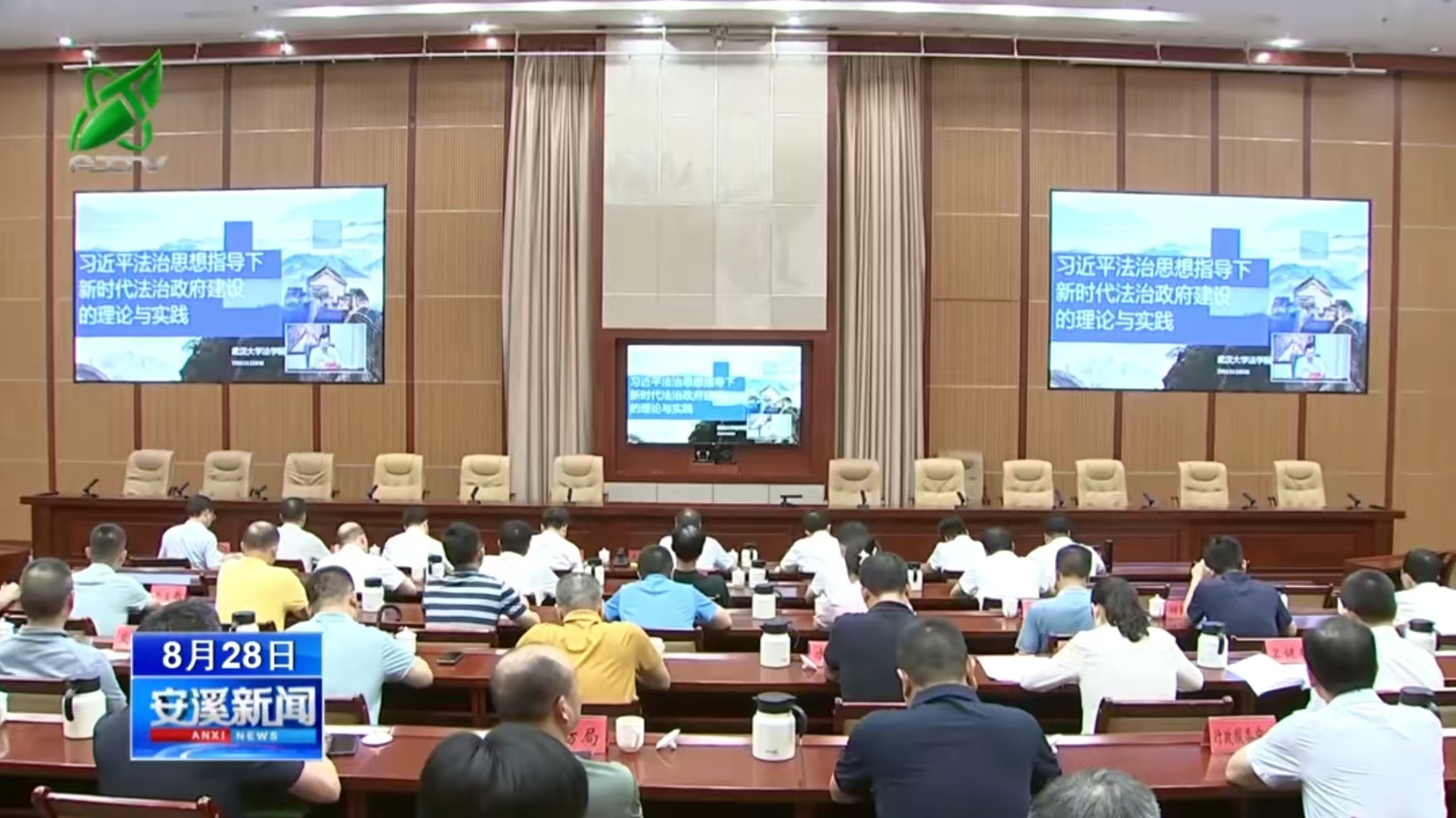 27日,泉州市委理论学习中心组学习(扩大)会召开,邀请武汉大学法学院教授、博士生导师刘长兴作《习近平法治思想指导下新时代法治政府建设的理论与实践》专题讲座。吴毓舟、刘永强、陈剑宾等县四套班子领导在安溪县分会场组织收听收看。