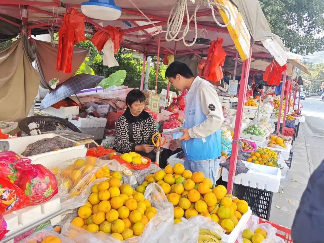 “宪法里有没有写咱们农民的权利?”“电信诈骗有哪些常见手段?”——在农贸市场里,“蒲公英”普法志愿者被乡亲们团团围住。志愿者们手持宪法读本和反诈宣传折页,用亲切的闽南语讲解宪法如何与我们的生活息息相关,同时引导大家认清诈骗行径及危害。