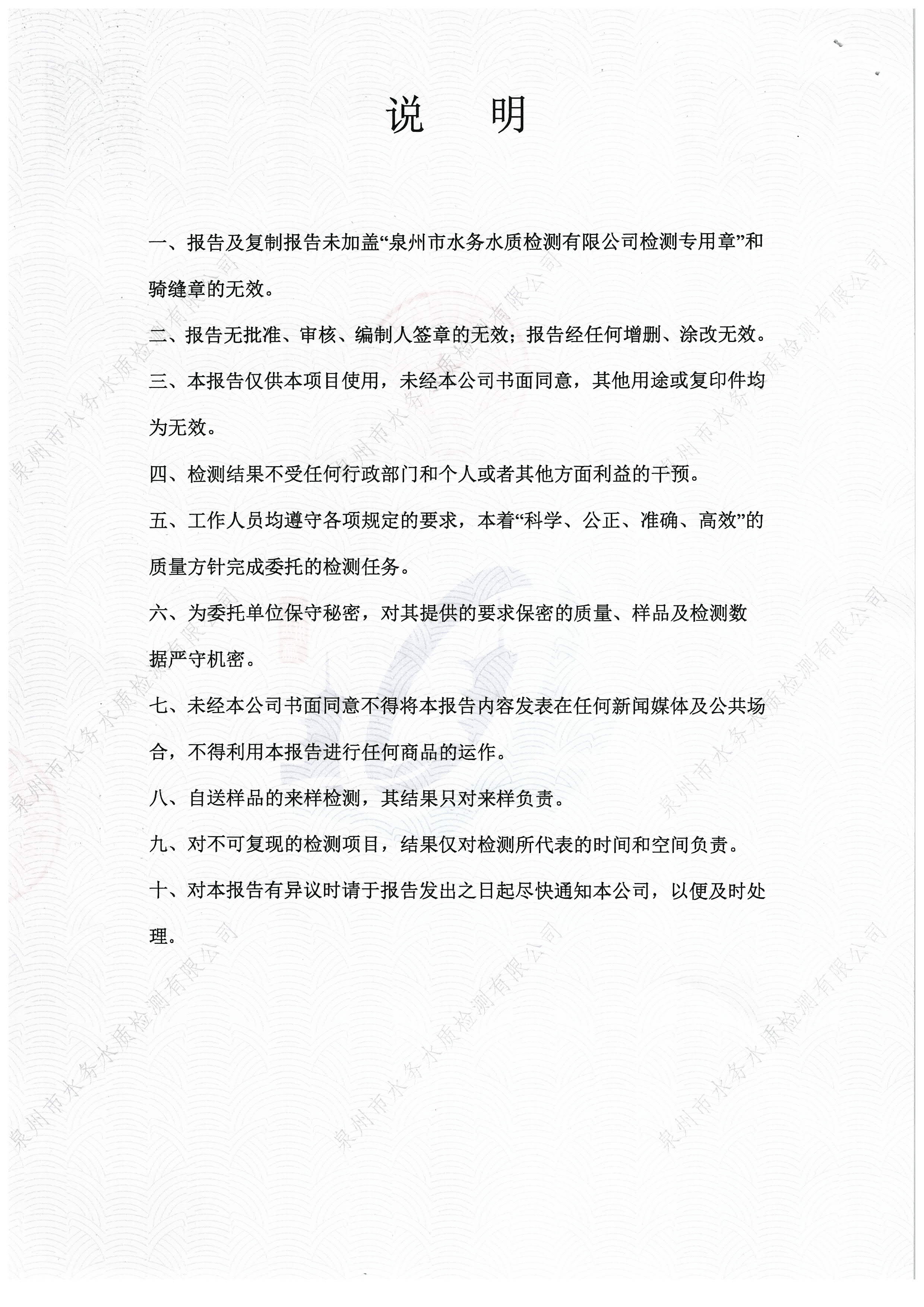 2026年01月出厂水送泉州水质站43项检验报告