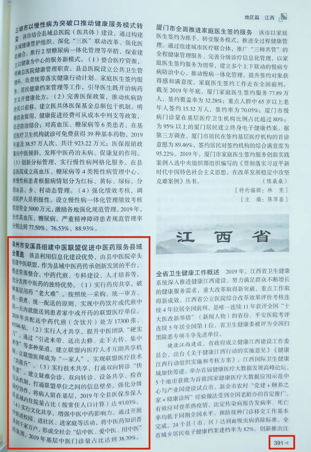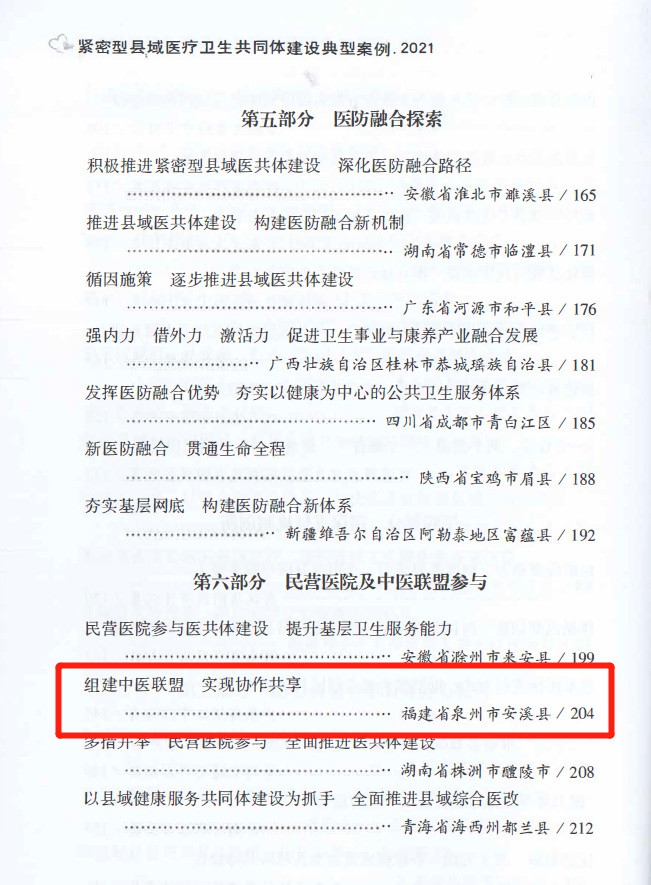 据悉,安溪县中医院“联盟+共享”改革经验还收录于国家《紧密型县域医疗卫生共同体建设典型案例》《中国卫生健康年鉴》和《福建省全面深化改革案例汇编》。