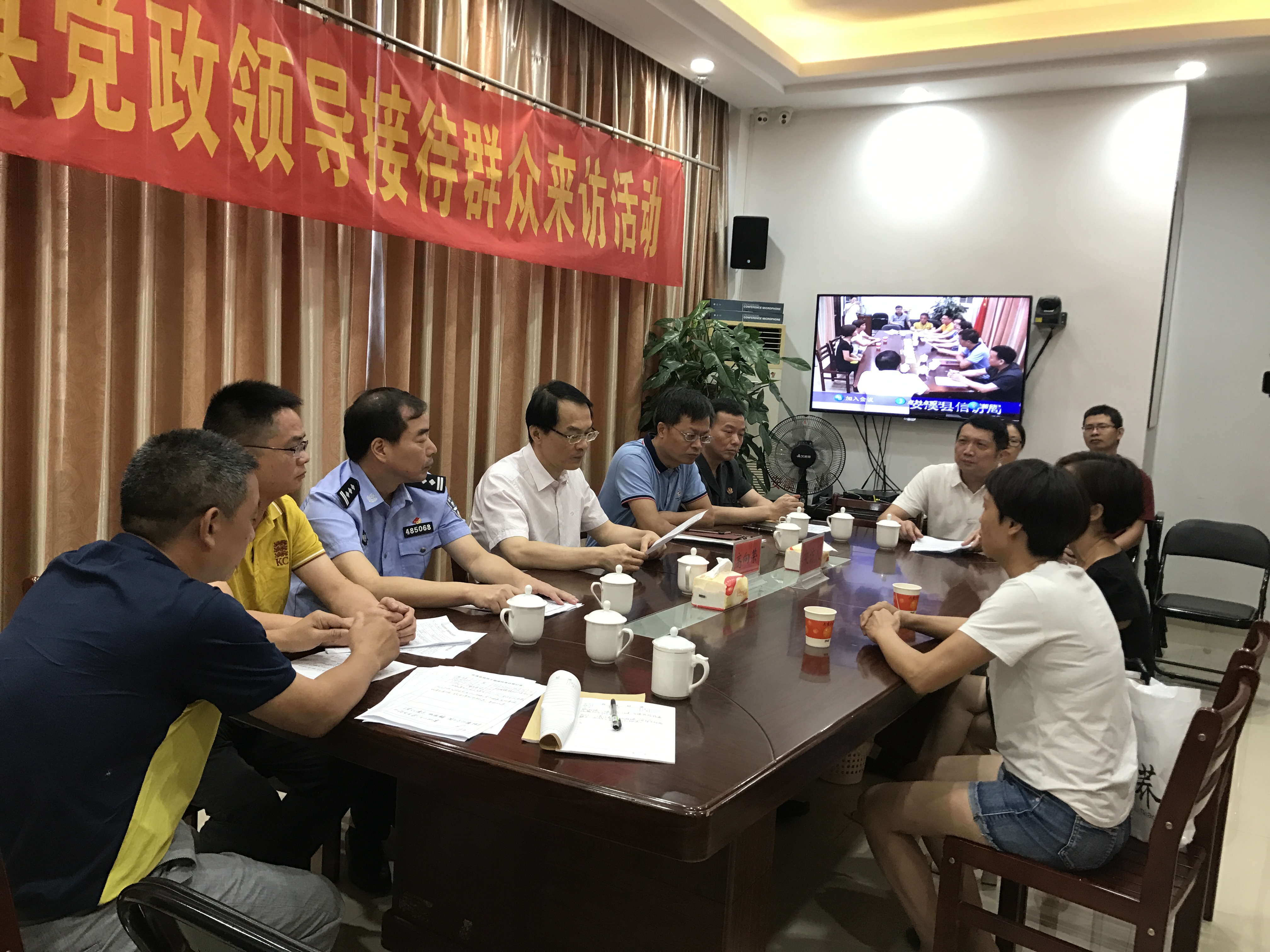 9月1日,县委书记高向荣到县信访局会议室接待来访群众,和群众面对面交流,协调解决群众合理诉求。