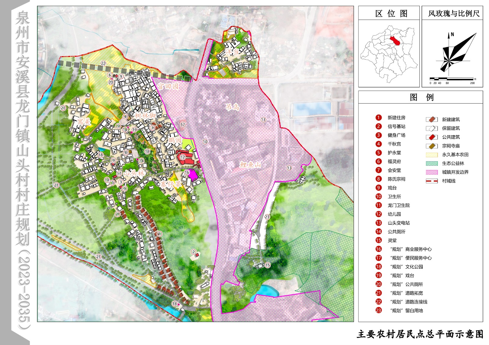 为了切实有效指导安溪县龙门镇山头村的规划建设,我镇委托中晏建设集团有限公司开展《安溪县龙门镇山头村村庄规划(2023-2035)》的方案编制工作。经设计单位实地勘查、资料收集、分析梳理、征求意见及多轮修改后形成规划方案,对村庄的用地性质、道路交通、配套设施、景观风貌等提出了具体指导,并于2024年1月19日通过县自然资源局组织的专家技术评审,于2024年1月23日通过山头村村民代表会议审议。为提高规划编制的民主性和科学性,根据《中华人民共和国城乡规划法》、《福建省实施<中华人民共和国城乡规划法>办法》等有关规定,现对该规划成果进行公示(公示期三十天),向社会公众征求意见和建议。